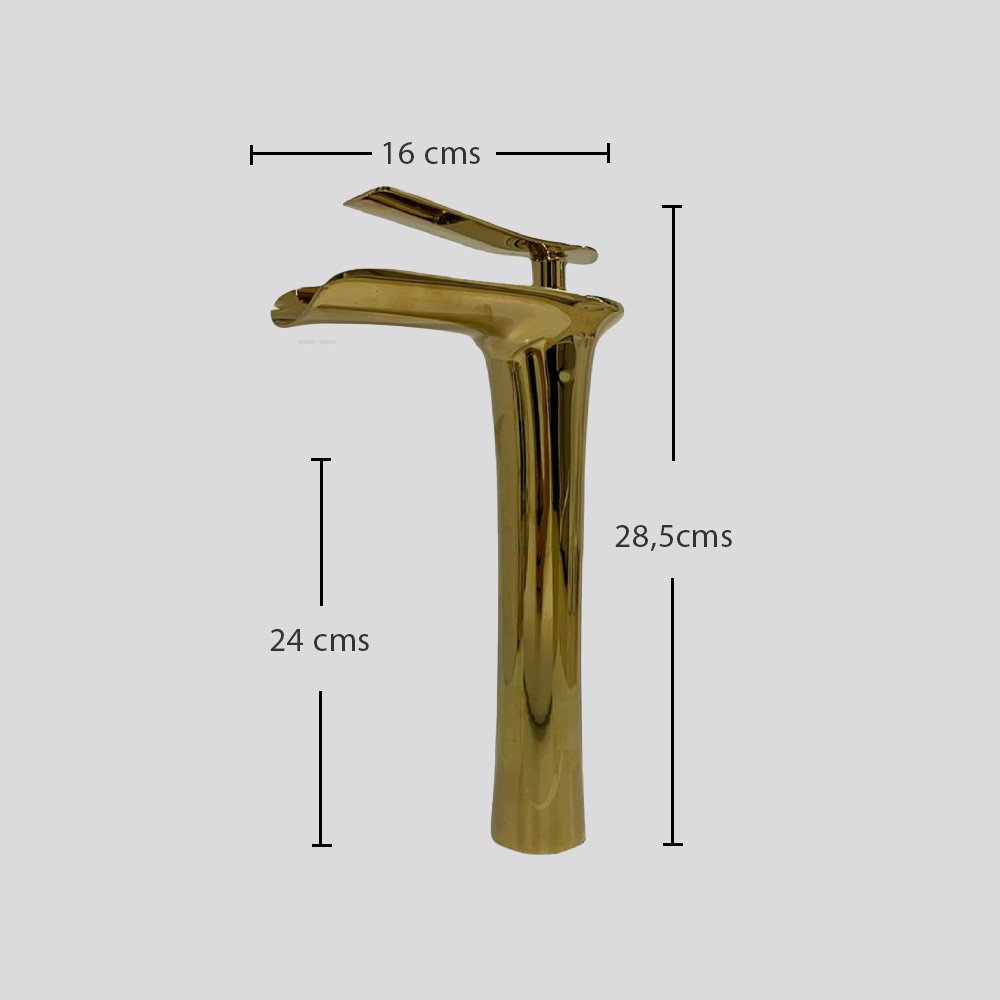 Con un diseño imponente y líneas definidas, esta grifería monocomando está pensada para destacar en lavamanos de sobreponer. Su estructura alta y proporciones equilibradas ofrecen una experiencia cómoda y visualmente impactante.
