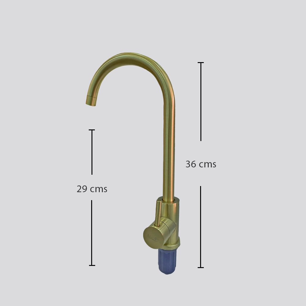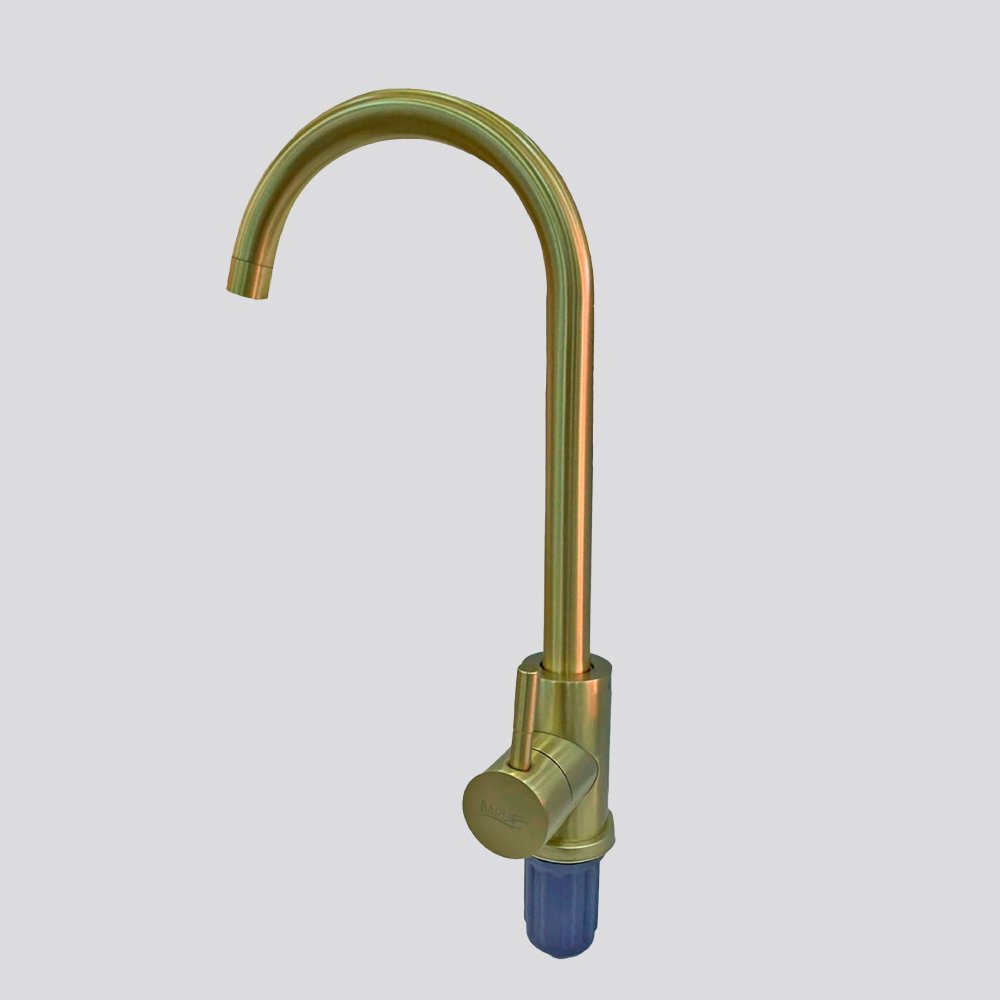 Grifería monocomando en acabado dorado satinado, ideal para lavaplatos.