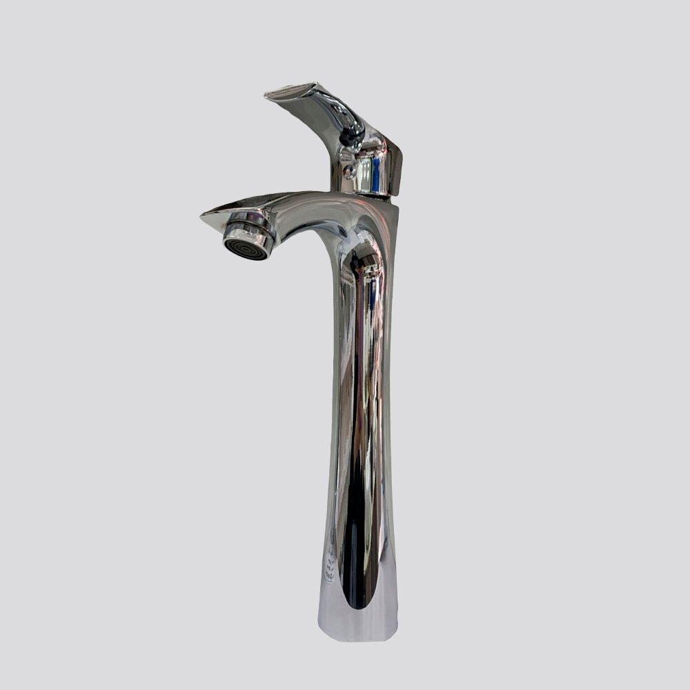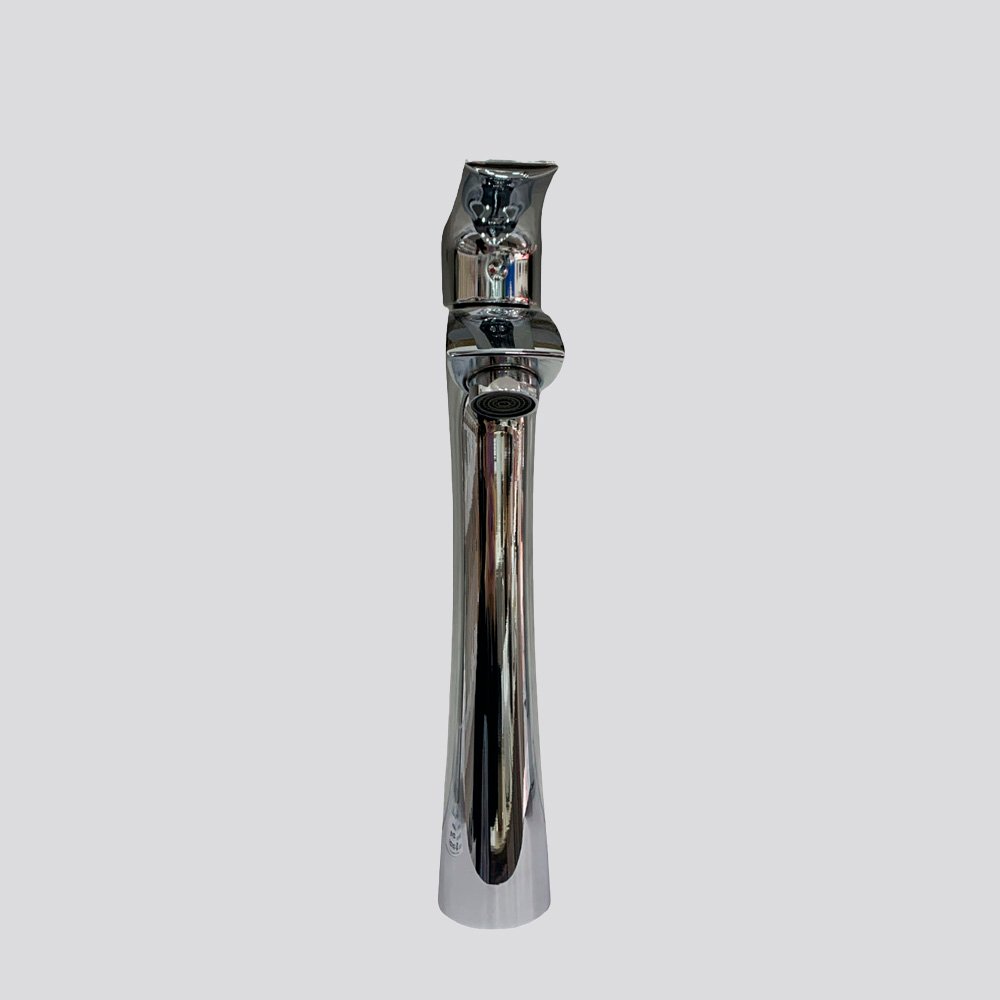 Grifería monocomando de diseño moderno y elegante, ideal para lavamanos de sobreponer. Su estructura estilizada y acabados brillantes aportan un toque contemporáneo y sofisticado al baño.