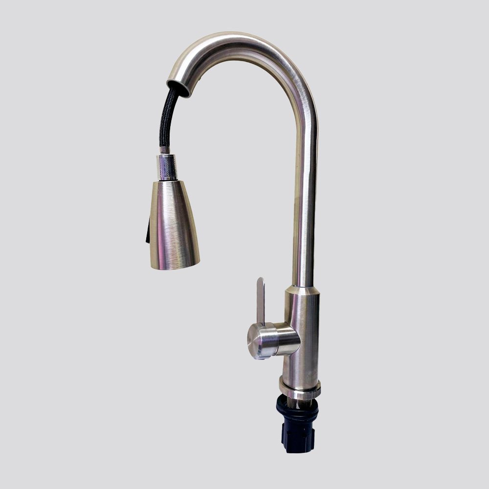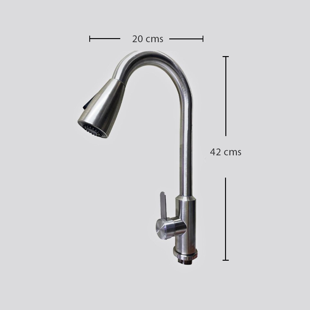 Grifería con pico extensible que facilita el lavado y mejora la experiencia en la cocina. Ideal para quienes buscan durabilidad y comodidad.