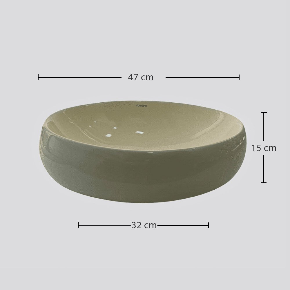 Lavamanos ovalado de porcelana en color blanco, diseñado para instalación sobreponer. Su forma estilizada y dimensiones generosas lo hacen ideal para baños elegantes y funcionales.