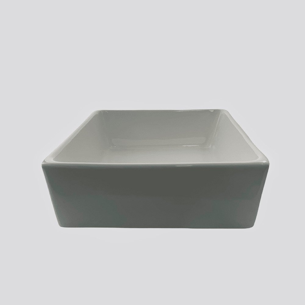 Lavamanos de porcelana con acabado blanco y diseño cuadrado, perfecto para darle un toque moderno y limpio a tu baño.