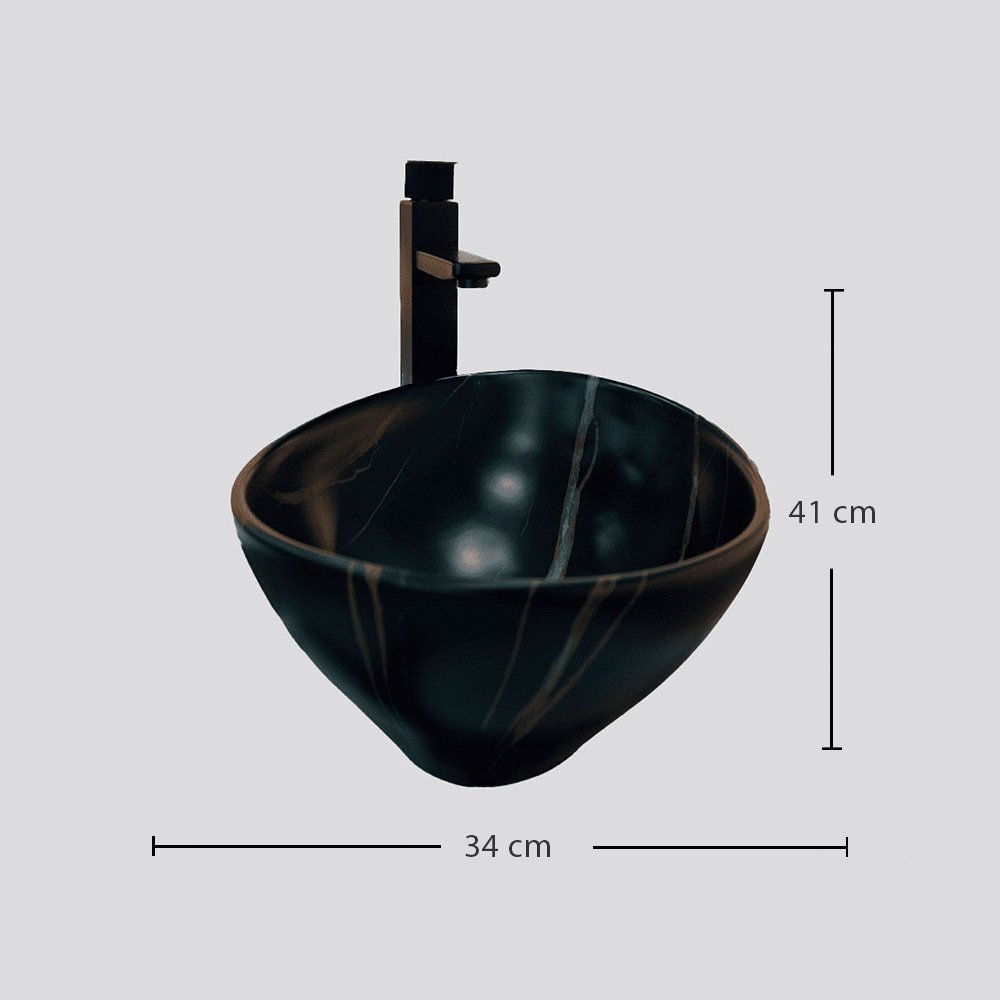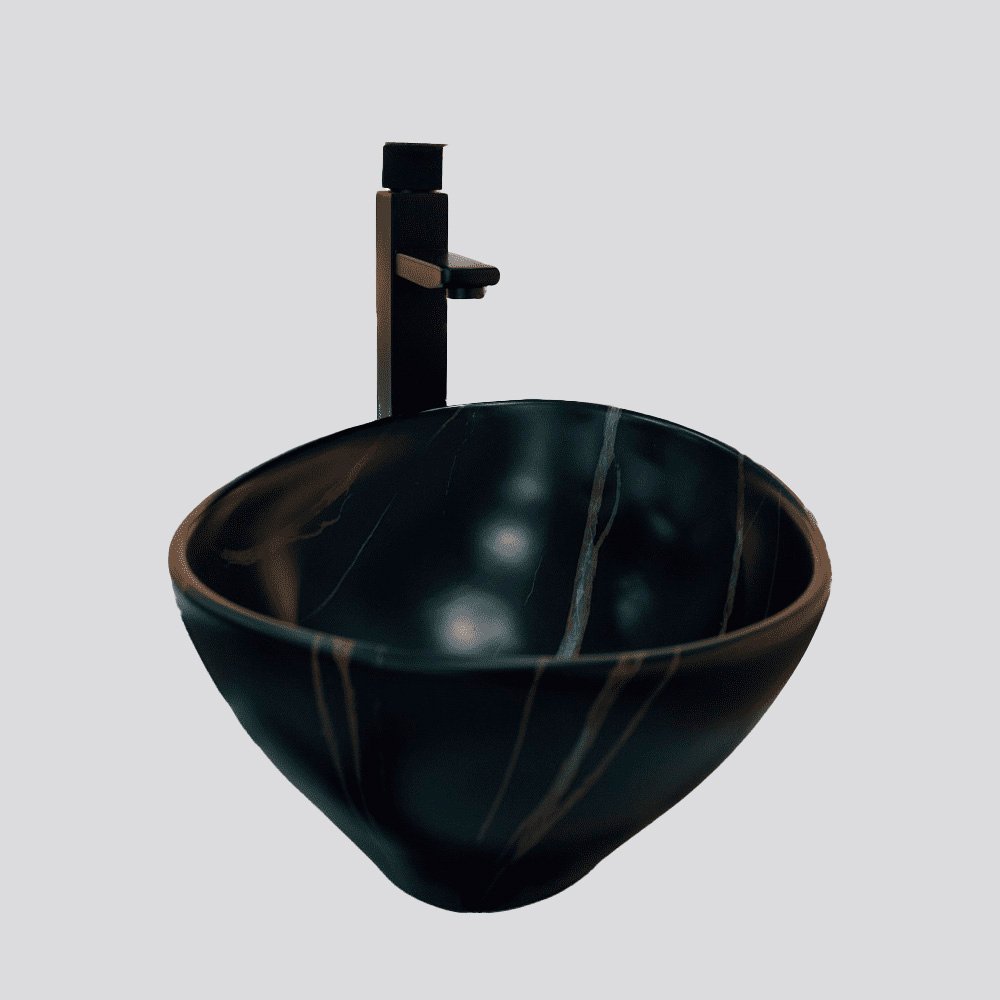 Lavamanos de diseño moderno tipo estadio en acabado negro, ideal para baños elegantes y contemporáneos.