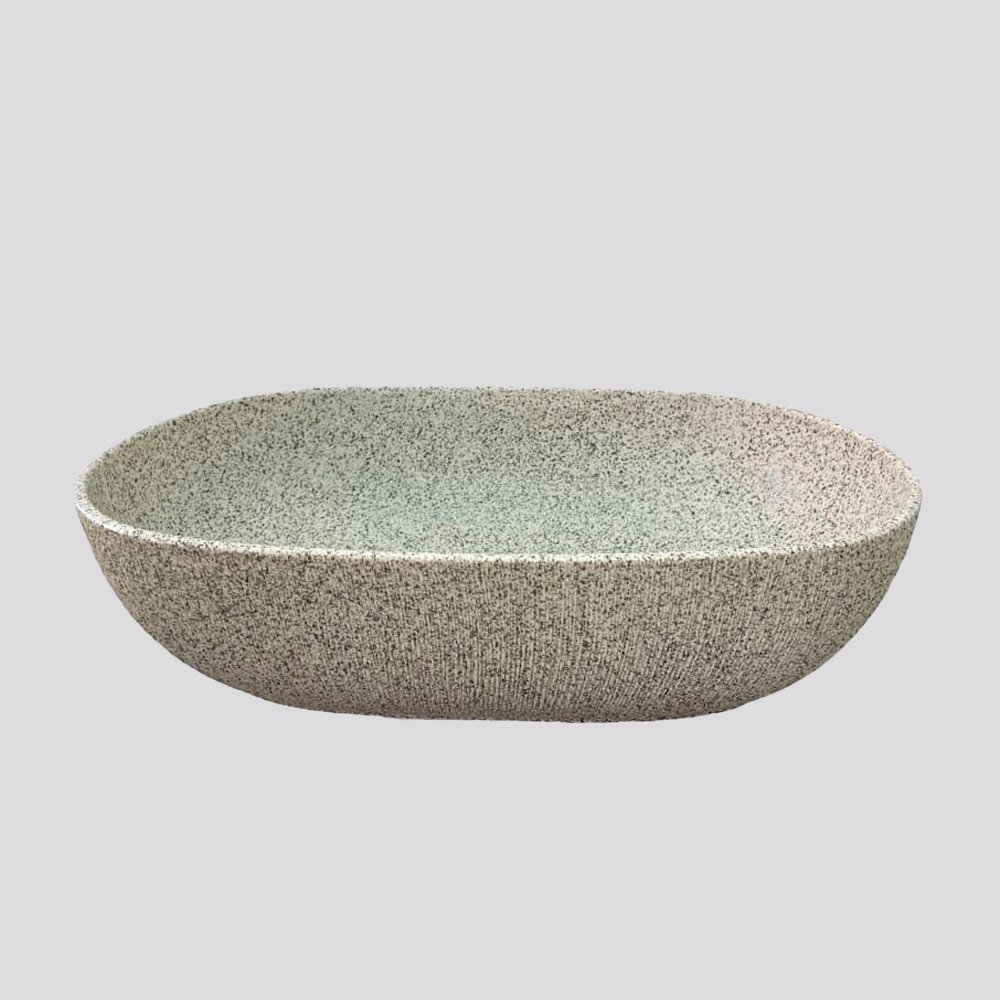 Lavamanos de piedra con diseño rústico y natural, ideal para baños que buscan un estilo orgánico y auténtico.