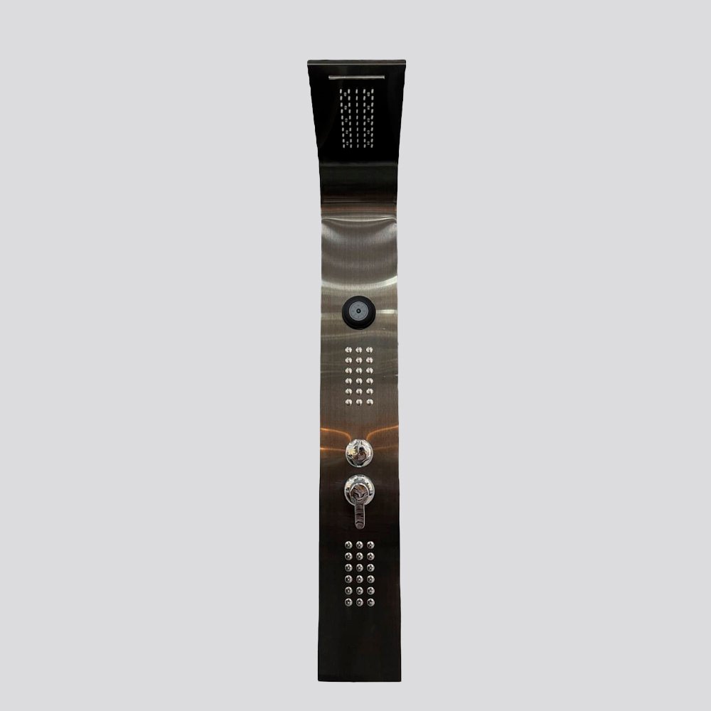 Disfruta de una experiencia de ducha moderna con esta torre multifuncional que incluye luces LED y conectividad Bluetooth. Estilo, tecnología y confort en un solo producto.
